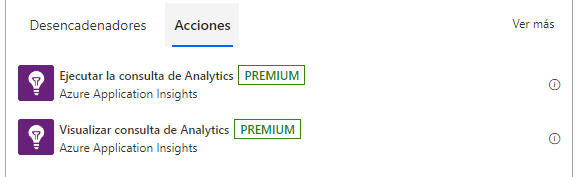 Para realizar la consulta vamos a utilizar las acciones disponibles en Power Automate para Azure Applications Insights y vemos que tenemos dos: