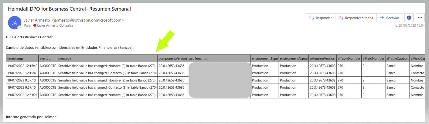 Planteamos un escenario en el que un responsable de DPO quiere conocer cuando cambian los valores determinados campos en la ficha de Banco en Dynamics 365 Business Central. Para ello necesita tener cada semana un resumen de los cambios en un correo electrónico.