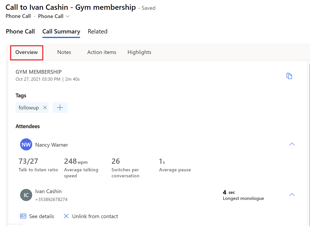 El resumen de la reunión nos ayuda a entender el sentimiento general de la llamada o reunión y realiza un seguimiento de los indicadores clave de rendimiento (KPI) útiles de la conversación, como la relación hablar-escuchar .