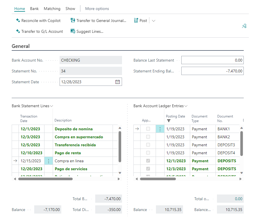 Vamos a ver cómo en pocos pasos podemos estar probando y evaluando la funcionalidad de conciliación bancaria con Copilot.