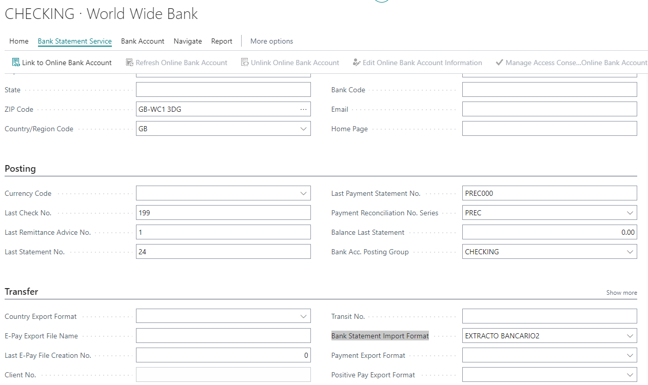 Paso 2 : Comprobar configuración de la Ficha de Banco