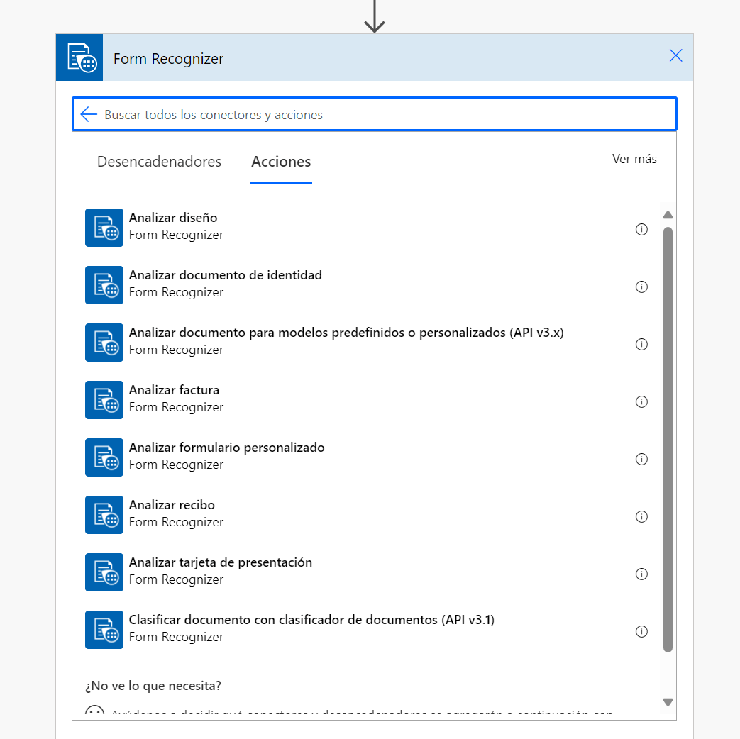 En ambas opciones encontraremos un conector de Azure AI Document Intelligence y Business Central.