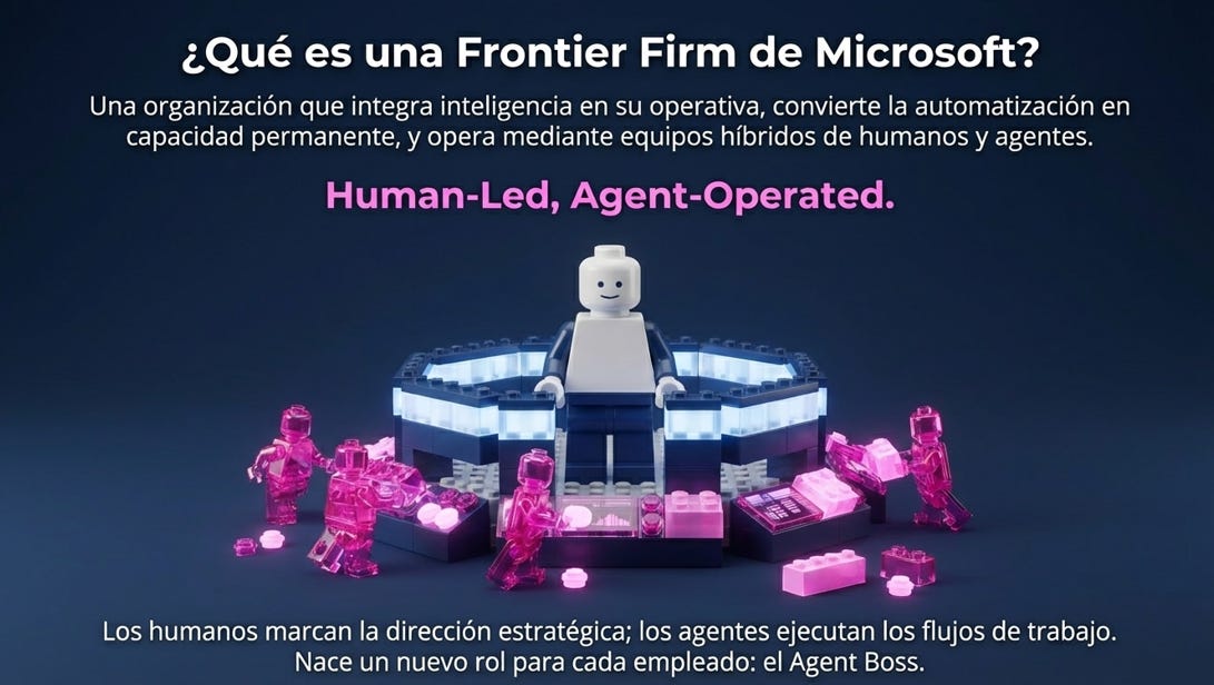The core message: Human-Led, Agent-Operated. Humans set the strategic direction; agents execute the workflows. Every employee becomes an Agent Boss. You don’t replace people — you give them superpowers. That’s a Frontier Firm. And that’s what we’re building at VS Sistemas with our clients.